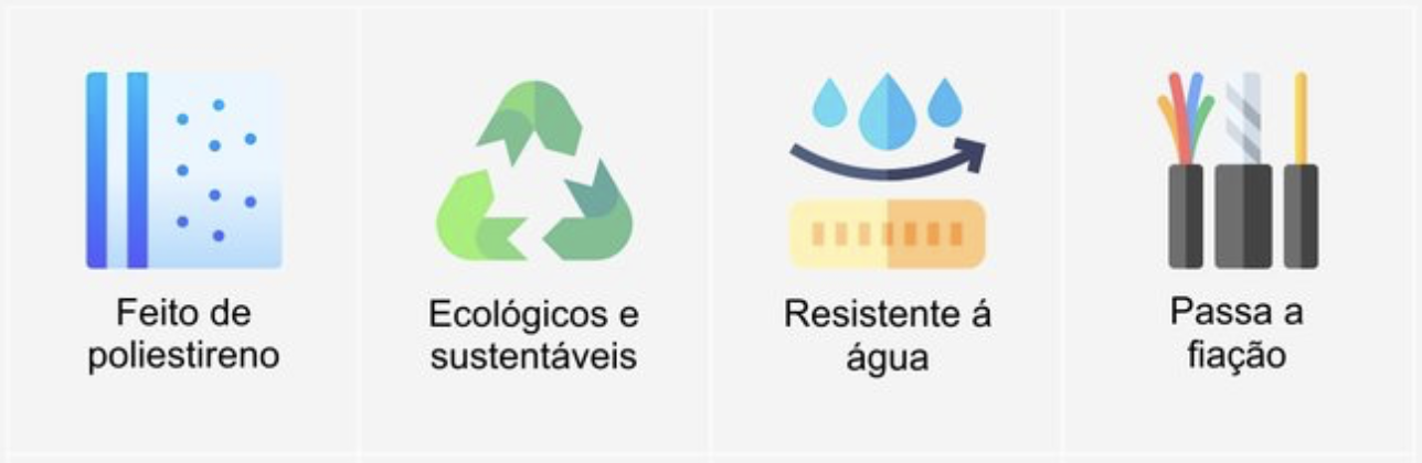 Benefícios: Resistência à água e mofo, livre de pragas, fácil limpeza, instalação simples